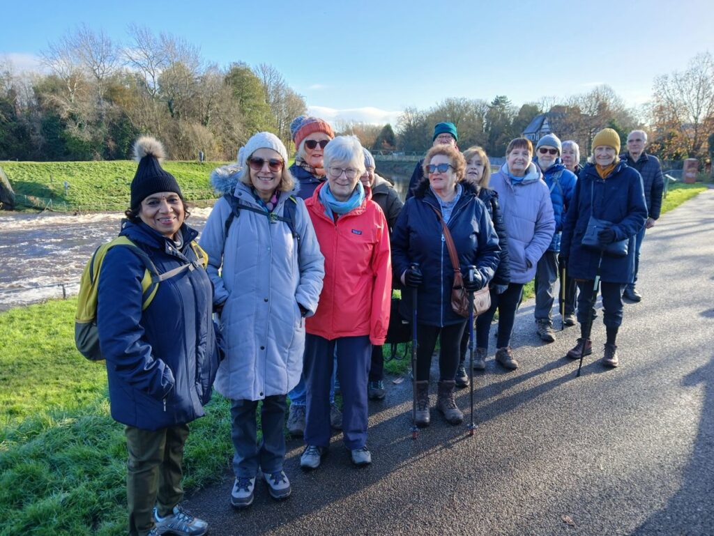 We met up at Fletcher Moss Gardens on a  beautiful crisp, cold, but dry and sunny day. A walk through the gardens took us to Stenner Lane which we followed all the way to the river Mersey. The river was fast-flowing and swelled after the heavy rains of Storm Bert. Crossing the river over Simons bridge, we followed Ford Lane to the outskirts of Northenden. Walking alongside the river was challenging at times with huge puddles on the path along the way, including one completely flooded section which required us to edge sideways along a high kerb, holding onto a barrier alongside the river. An interesting addition to a potentially simple walk! It was here that I discovered that my boots were leaking. I think a letter to Santa Claus might have been needed. We headed into the Northenden Riverside Park, the site of the former Northenden Mill by a weir, which was in full flow following the rain of the past few days. From here, we walked through Kenworthy Woods and skirted around Northenden, eventually heading  to Palatine Road, just off which was our lunch stop at the Farmers Arms. This was the last walk of 2024 and I’m looking forward to more interesting walks in 2025.