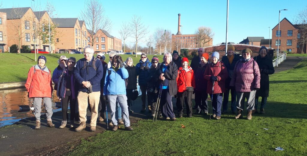 Our walk today was in glorious sunshine as you can see from the photograph. Being the end of November, it was cold but we were all wrapped up well. Twenty of us met at Piccadilly Station then headed off towards Piccadilly Basin where we joined the Rochdale canal. We followed the canal towpath through the centre of Manchester and out through Ancoats and Newton Heath eventually reaching Failsworth. The bright sunshine meant that the reflections on the still waters of the canal were beautiful when the geese weren’t swimming around. Upon reaching Failsworth, we had lunch at the Millgate pub. The food and the service were first class and we all enjoyed catching up over a hot meal. That’s our last walk of 2023. We will be taking a well-earned rest in December to enjoy the festivities. May our 2024 walks be as enjoyable as this year’s.
