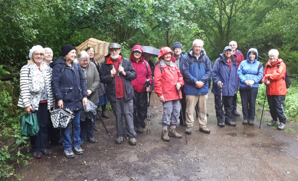 This walk was a wet one. The forecast was for heavy rain but on the day, it was only light drizzle. The fantastic scenery made up for it. We met at Victoria station to catch the tram to Radcliffe. From here we walked down the unusually named Banana path on to the Manchester, Bury and Bolton canal. After following this canal for a mile or so, we branched off and made our way through a fair bit of mud to reach the Outwood trail – a former railway line from Manchester to Bolton.
